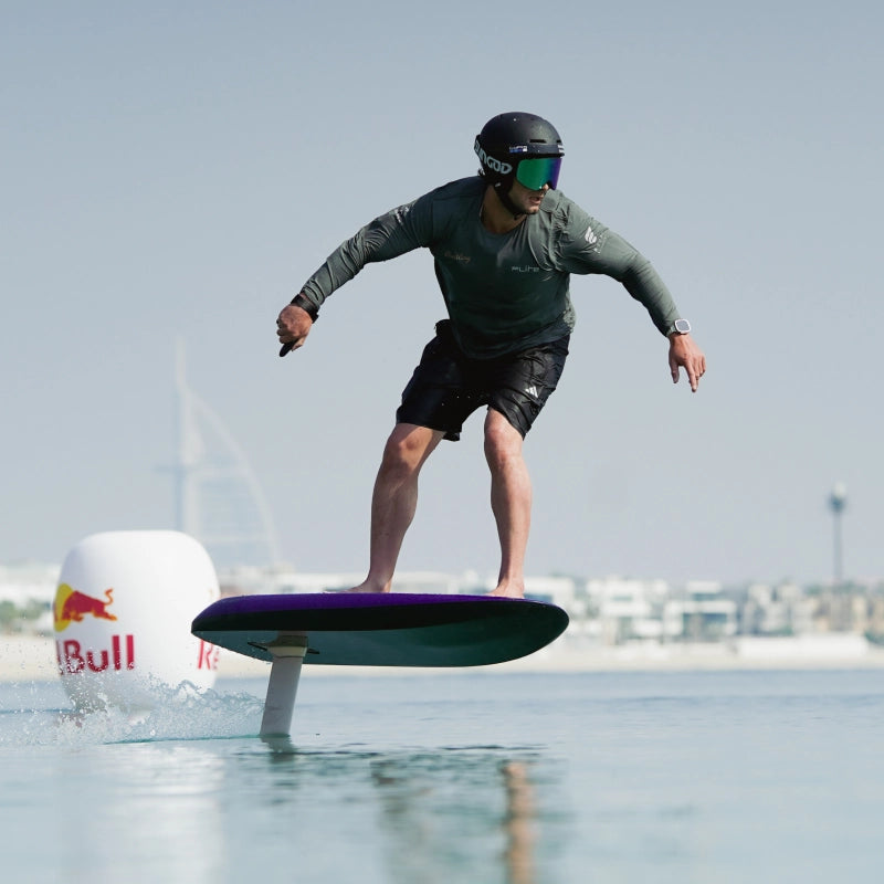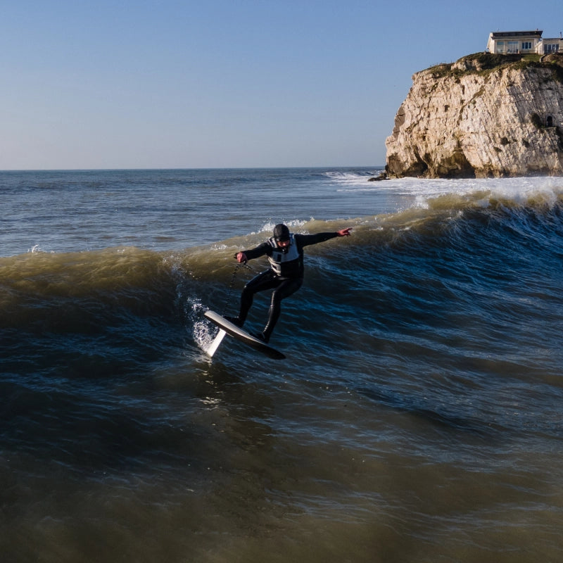Tom’s repertoire includes kite foil racing (1st Aruba Hi-Winds), long distance challenges (Fastest Wingfoil around the Isle of Wight), surf foiling, tow-in big wave riding and carving with wing foils. In 2021 he won the inaugural Flite Cup in Portugal, and since then has taken Fliteboarding to new extremes by riding the biggest waves ever attempted on a eFoil, at Nazaré, alongside Glyn Ovens.
